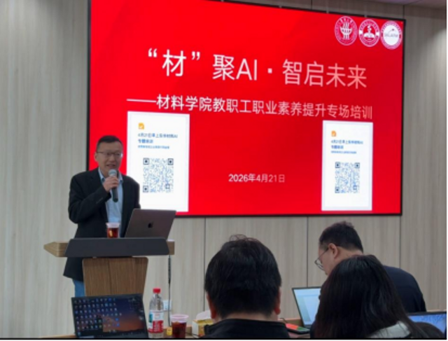 为全面落实“人工智能+”行动,以人工智能引领科研范式变革,提升教职工数字素养。4月21日,材料科学与工程学院开展“材”聚AI·智启未来——教职工职业素养提升专场培训。材料科学与工程学院党政领导班子成员、教职工代表120余人参会。培训会由材料科学与工程学院党委书记李斌荣主持。
